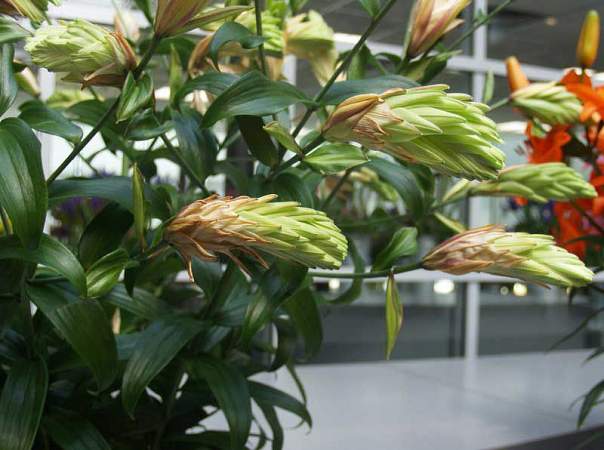 Кстати, особенность зеленых азиаток в том, что они со временем "перекрасятся". 'Must See' станет оранжевой в крапинку, а 'Mystery Dream' — винно-красной. То есть, они не являются собственно зеленовато-белыми, а как бы лишены пигмента, пока стоят в бутонах. Это похоже на весеннюю срезку тюльпанов. Часто мы покупаем их еще совсем зелеными "клювиками", а потом в тепле они набирают массу, цвет и раскрываются красивые цветки.