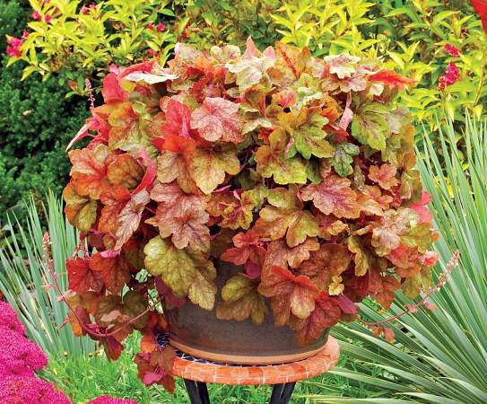 Каталог гейхер и гейхерелл на сезон 2018 г. изобилует новинками. Особенно хороши некоторые гейхереллы. Это сорта Арт Нуво и Арт Деко, потрясающие Баттэд Рам и Фае Фрост, а также разноцветный Редстоун Фолз. Коллекция похожа на цветной витраж — радостная и яркая!