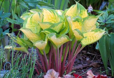Знакомить вас с коллекционными хостами — сплошное удовольствие. Такое разноцветье, даже не верится, что оно создано листьями хост. Каждый сорт чем-то необычен: один супер волнистый, другой потрясающе желтый, третий на красных черешках, а четвертый — все сразу!