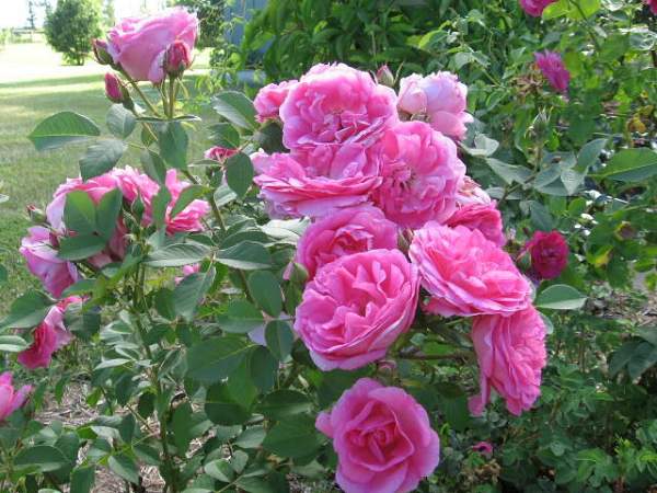 Эта роза канадской селекции 1980 г. — просто чудо. Куст очень сильнорослый, прямостоячий, с устойчивой к заболеваниям густо-зеленой листвой. Подмерзает только при температуре ниже -30 °С. Даже если макушки повреждаются морозами, хорошо отрастает от основания и цветет махровыми розовыми цветками. Цветки крупные, появляются в кистях.