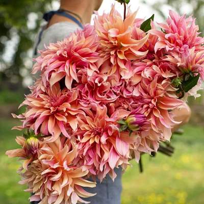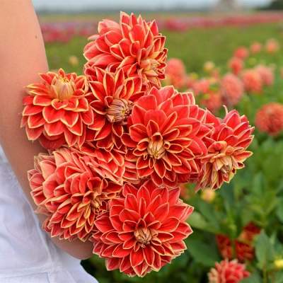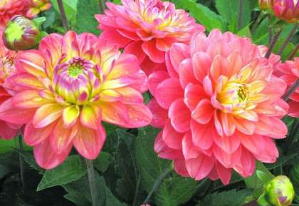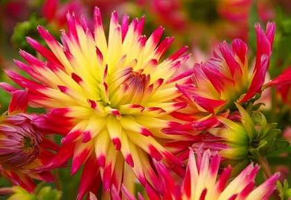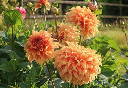 Вот где цвет. Лиловый, желтый, мандариновый, бежевый, красный, кажется даже фиолетовый в крапинку есть... Да любой, кроме лазури, конечно, ведь речь о георгинах. Если хочется взбодриться, добро пожаловать. Шоу удалось. Красиво выступают группы кактусовых, помпонных, декоративных, анемоновидных, бахромчатых. Поют и танцуют на все лады — от арии и балета до водевиля.