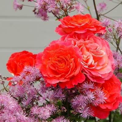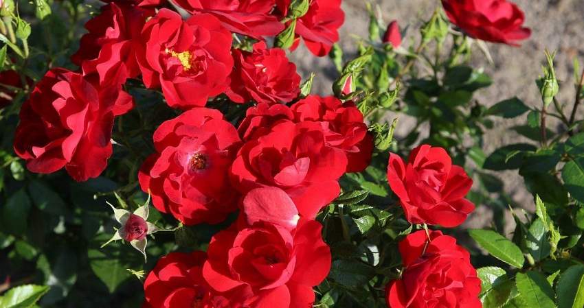 Миниатюрные и почвопокровные розы от Кордеса — самые устойчивые и обильные. Цветут они практически непрерывно все лето. У сорта Corazon (Коразон) цветки диаметром 4-5 см, махровые (17-25 лепестков), красные с серебристой обратной стороной лепестков, собраны в густые соцветия. А у Mandy (Мэнди) цветы имеют прелестную форму — словно крошечные камелии.