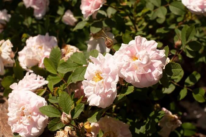 Отлично показала себя полуплетистая роза Квадра. Она устойчива и весьма красива. Цветок сложен как у галльской розы, а куст пышный, с красивой блестящей листвой и слегка поникающими побегами. Морден Блаш тоже имеет красивые цветки. К тому же они долго сохраняют свежесть, до двух недель.