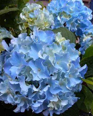 Гортензия крупнолистная Fripon (Фрипон). Сорт из серии "Royalty Collection". Соцветия крупные, плотные, шаровидной формы, диаметром до 25 см. Цветки от сиренево-голубых до тёмно-синих, волнистые, диаметром 5-6 см. На нейтральных и щелочных почвах цветки имеют розовый оттенок. Кусты высотой 90-100 см, шириной 100 см.