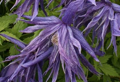 Интереснейшая серия княжиков! Называется Surprise. Сорта задорно лохматые, петалодии окрашены необычно — от желтого до синего и розового в крапинку. Блю Сюрпрайз вообще двухцветный. Также есть ряд примечательных новинок в группе крупноцветковых. Белиссима и Азур Болл подкупают нежной окраской, Пикоти наоборот, броский и впечатляющий, Темптейшен смотрится как драгоценная брошь. Цельнолистные — это плюс к нашим цветникам. Маленький японский Ханадзима хорош и в рокарии, а Арабелла в белом может как почвопокровное растение поиграть.