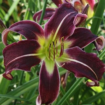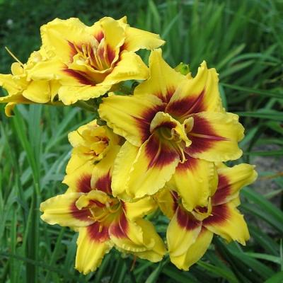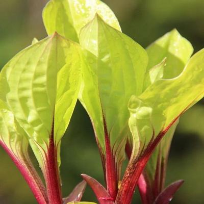 Хоста Lemon Snap (Лемон Снэп). Желто-зеленые листья на красных черешках.