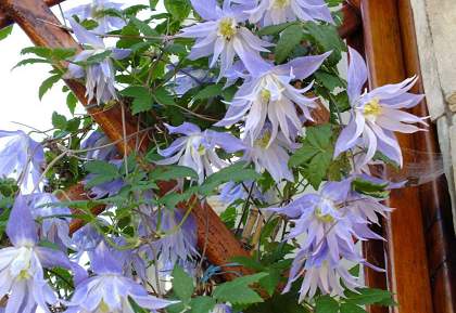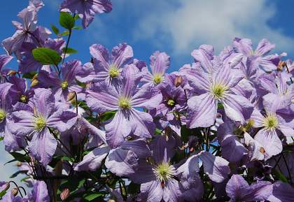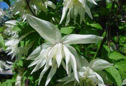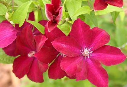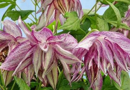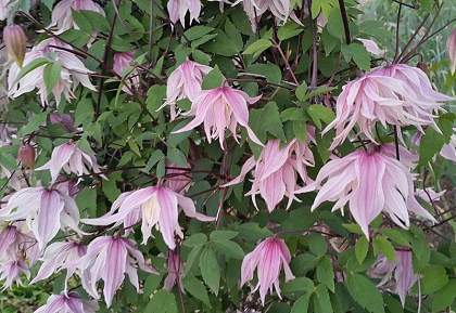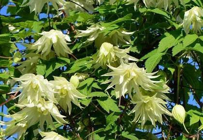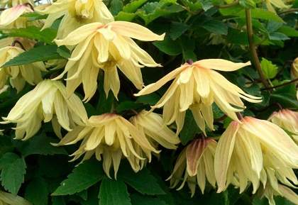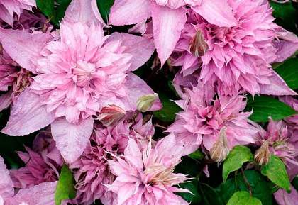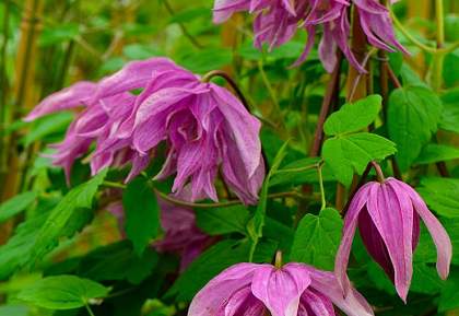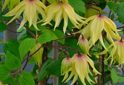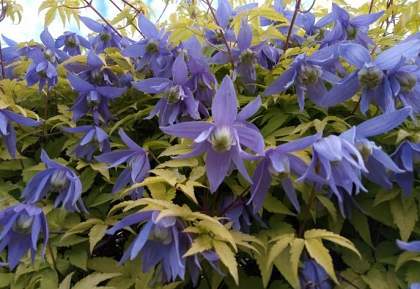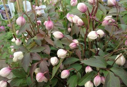 Клематисы в контейнерах 0,7 л, а княжики в двухлитровых — уже довольно крупные. Сорта совершенно замечательные. Среди княжиков три с желтыми цветками. Из клематисов выделяется сорт Мульти Пинк, новинка и хит этого года. Самым обильным цветением может похвастаться клематис горный. У нас представлен сортом Рубенс. Для тех, кому нужна беспроблемная лиана — клематис тангутский или всеобщий любимец Пурпуреа Плена Элеганс.
