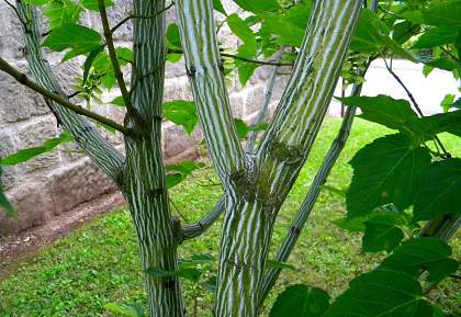 Клен зеленокорый. Деревце или кустарник родом с Дальнего Востока. Отличается потрясающе красивой окраской коры. Листья похожи на липовые и осенью окрашиваются в жёлтые и буро-жёлтые оттенки. Растёт быстро. Хороший медонос.
