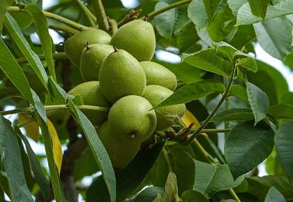 Орех Зибольда. Дерево с декоративными крупными листьями и ажурной кроной. Орехи 2-4 см, округлые, ядро намного лучше по вкусовым качествам, чем ядро грецкого ореха. Но сам орех меньшего размера. Высокодекоративное растение. Редкий вид с Дальнего Востока, занесён в Красную книгу России.