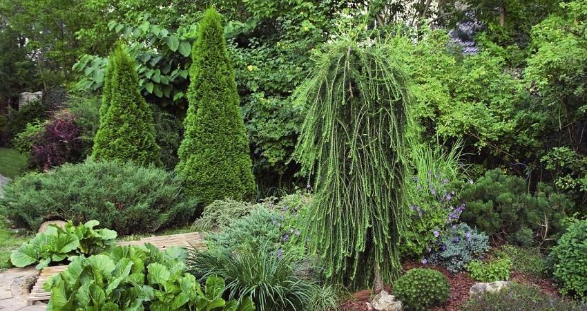 Многие из представленных на весну сортов и форм способны сыграть и роль бриллианта — главного украшения сада. Например, формы лиственницы европейской с изогнутыми ветвями, или плакучие ели. Особое положение наверняка займут желтолистные сорта сосны, пихты, ели.