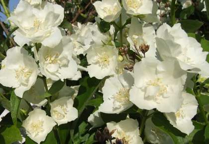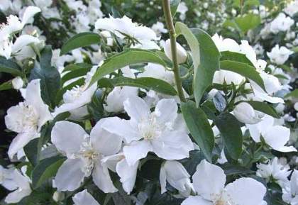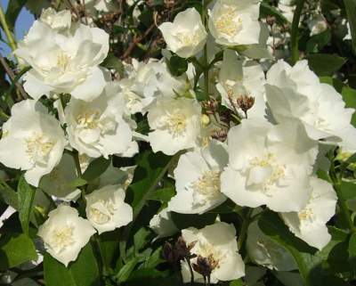 Замечательные новинки в разделе чубушников. У каждого сорта свои плюсы. В основном, кусты невысокие, до 200 см. Цветки разнообразные — помпоны, колокольчики, тарелочки. Генералиссимус отличается огромными звездами до 10 см в диаметре, а Крем-брюле очаровательной желтоватой окраской лепестков. Если ищете совершенства — для вас густомахровый сорт, который так и называется — Совершенство.