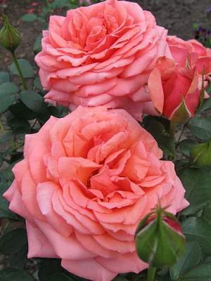 Многие сорта цветут так обильно, что буквально не видно листьев. Например, роза 'Dominica' с густо-красными цветками, сложенными из волнистых лепестков. Совсем другая роза - 'Barbados'. Из бутона совершенной формы раскрывается классический цветок. Он все раскрывается и раскрывается, пока не превращается в большой нежно-розовый шар. Розы 'Fiji' и 'Ibiza' поражают игрой волшебных переливов и тонких оттенков. А 'Honolulu' - ярким жизнерадостным цветом и цветком красивой формы.