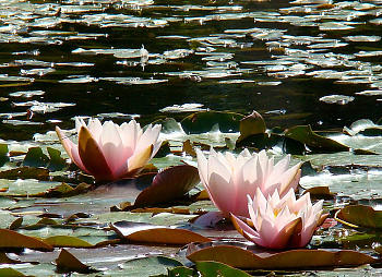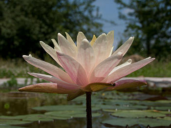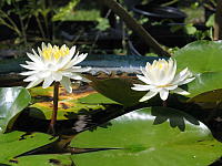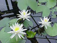 Walter Pagels — Kirk Strawn 1993, n, блюдцевидной формы, белый с лёгким румянцем, диаметром 8-10 см, махровый (27-31 лепестков), листья сердцевидные. Может цвести в мелкой воде на глубине до 30 см.