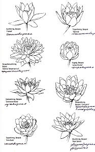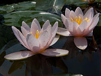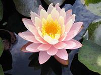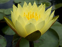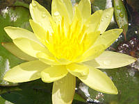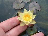 Pygmaea Helvola — Latour-Marliac 1879, n, карликовая, звёздчатой формы, диаметром 3-4 см, махровая (16-19 лепестков), светло-жёлтая с ярко-жёлтыми тычинками, цветки чуть приподняты над водой. Листья овальные, 7х5 см с коричневыми пятнами. Для глубины 20-40 см.
