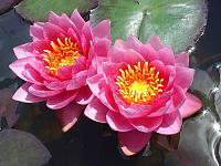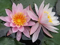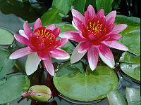 Fabiola — Latour-Marliac, 1913, m, цветки в центре насыщенно-розовые, к краю серебристо-белые, диаметром 12 см, махровые (23-25 лепестков) красивой формы. Листья диаметром 23 см, овальной формы, пурпурные, позже зеленеют. Зацветает рано, цветение богатое.