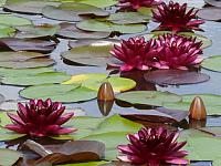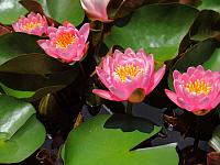 Rose Arey — Helen Fowler 1913, m, ярко-розовые, звёздчатой формы, сладко пахнущие цветки диаметром 16 см, махровые (34-39 лепестков) в изобилии появляются всё лето. Листья округло-овальные 20 см длиной, вначале пурпурные, позже зеленеют. На мелководье цветки могут возвышаться над водой на прочных черешках. Замечательный сорт, богатое цветение с весны до осени. Разрастается быстро.