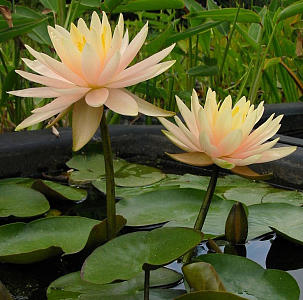 Надёжнее приобретать кувшинки в горшочках с грунтом. Как правило, это корневище с явно проснувшимися 2-3 почками, несколькими отросшими листьями. Такие кувшинки при благоприятных погодных условиях зацветут примерно через месяц, если поместить их сразу на глубину. В мелкой воде могут зацвести гораздо раньше.