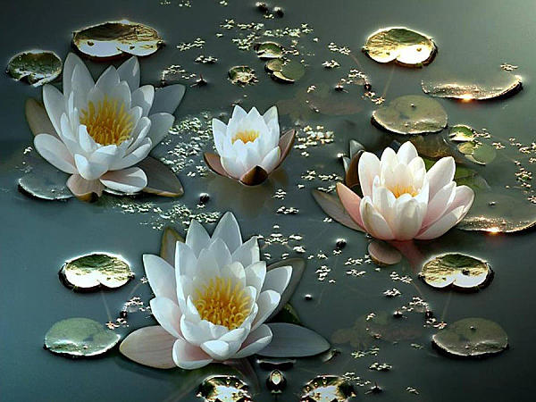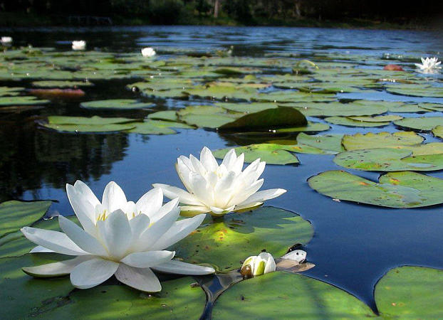 Раннее утро. На озере не шелохнёт ветерком. Водная поверхность – как зеркало, и среди этого зеркала выглядывают там и сям, как головки русалок, чудные белые лилии – кувшинки…