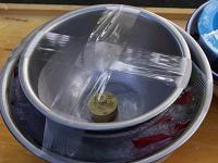 1. Наполните большую чашу водой на 1/3. Поставьте меньшую чашу в большую и закрепите края обеих емкостей клейкой лентой так, чтобы меньшая была неподвижна. Вода должна достигнуть 2/3 высоты.