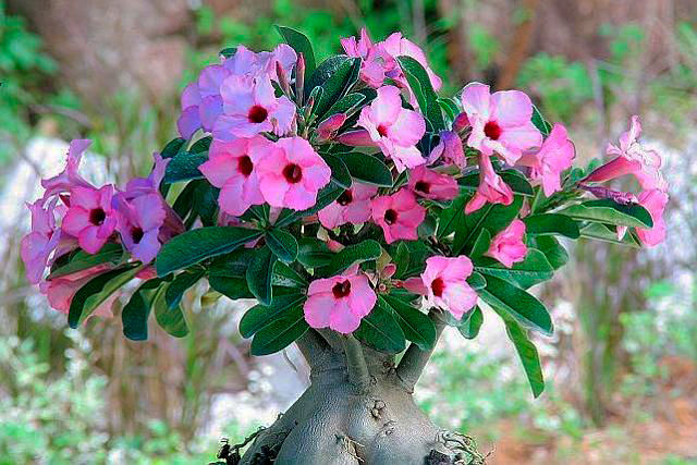 Кроме того, адениум многоцветковый требует в культуре обязательного периода покоя при пониженной температуре (8-14 градусов). В этот период растение полностью сбрасывает листья.