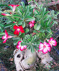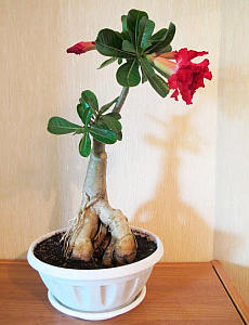Поэтому советую при покупке адениума в магазине выбирать такой экземпляр, форма которого может быть исправлена минимальной обрезкой. То, что эти растения выращены из черенков, лишает удовольствия когда-нибудь увидеть внушительный "баобабовидный" каудекс, но и только.