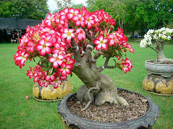 А если сажать эти тяжелые растения в низкие горшки и бонсайные плошки, использовать сыпучие рыхлые субстраты очень неудобно. Мои адениумы растут на смеси плотной суглинистой земли с изрядной долей крупного песка. На открытом воздухе и жарком солнце субстрат быстро высыхает, а именно это и важно при выращивании адениумов.
