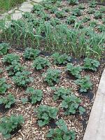 7. Дополнительно мульчируем посадки щепой. Казалось бы, почему не использовать для мульчирования хвою, скошенную траву, солому. Почему именно щепу? Другие материалы тоже очень хороши для мульчирования земляники, но только не по лутрасилу. На лутрасиле они будут быстро преть, создавая неблагоприятную среду. А щепа ведет себя вполне прилично, то есть остается сухой и чистой в течение нескольких сезонов.