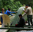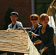 Длинная и тонкая бамбуковая щепа искусно имитировала срываемые ветром, как на полотнах Хокусая, брызги с гребней волн. Для этой цели материал подвергали термической обработке, нагревая бамбук с помощью паяльных ламп. Японский художник лично участвовал при укладке каждого бамбукового полотна. Приятно было наблюдать за работой этого уже пожилого, но чрезвычайно активного и деятельного человека.