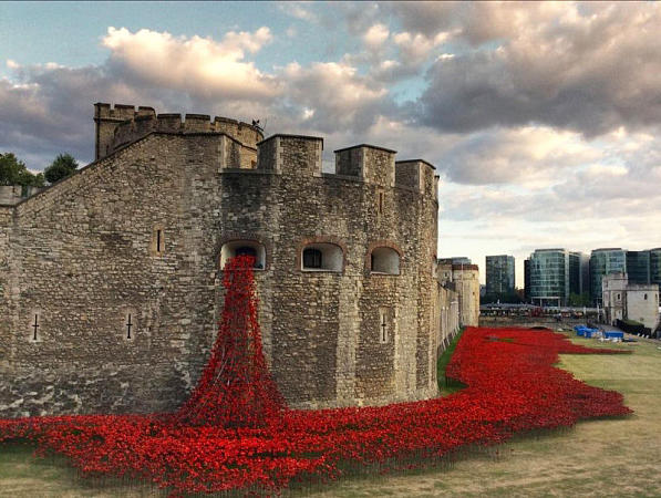 В честь столетней годовщины участия Англии в Первой мировой войне художник-керамист Пол Кумминс и сценограф Том Пайпер совместно с волонтерами "посадили" вокруг замка Тауэр 888 246 красных керамических мака, каждый из которых символизирует погибшего во время военных действий.
