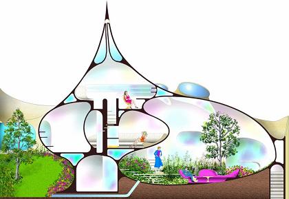 В жилой постройке под названием Наутилус (Nautilus), появившейся в 2006 году в мексиканском городе Наукальпан-де-Хуарес, нет привычной геометрии современных домов с параллельными поверхностями пола и потолка. Зелёные насаждения становятся органичной составляющей интерьера, а не просто фрагментом привычного вида из окон.