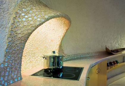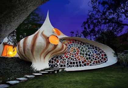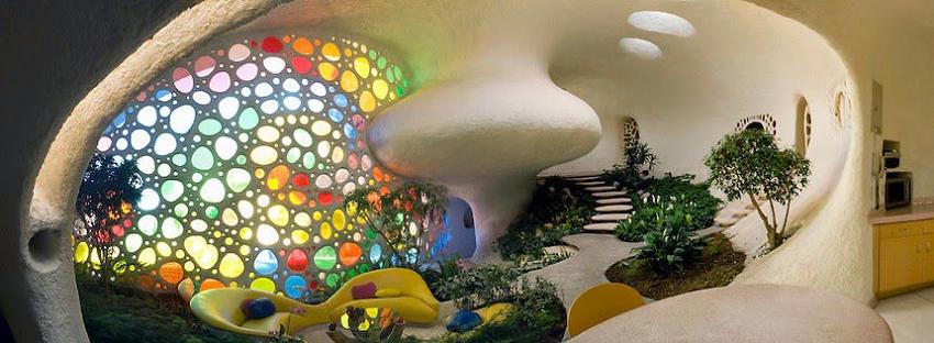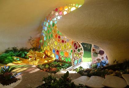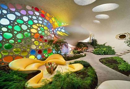 Днем солнечные лучи проходят внутрь через овальные световые люки, обеспечивая каждое помещение естественным освещением. Разноцветные витражи создают атмосферу волшебства, перемещают в другую реальность, защищают от посторонних взглядов: владельцы такого дома, как и морские обитатели красивых раковин, не любят повышенного интереса к своим персонам.