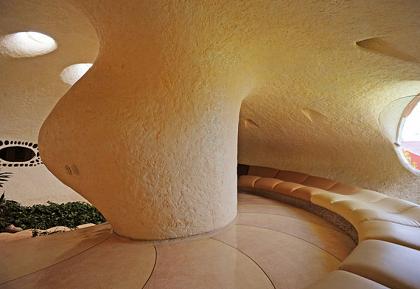 Подобно выделениям моллюсков, армоцемент обладает особой пластичностью и позволяет формировать конструкции любых конфигураций. При этом в застывшем виде он обладает высокой прочностью и подходит для изготовления тонкостенных элементов. Так, основание, стены, потолки и мебель дома Nautilus сделаны из слоя армоцемента толщиной всего пять сантиметров!