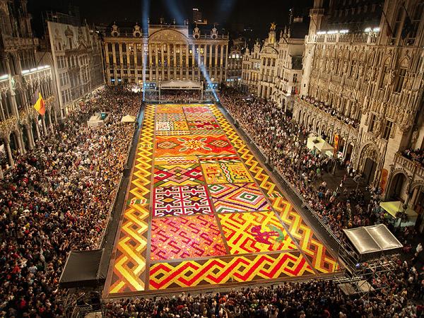 Каждые два года на одной из красивейших площадей мира — Гран Пляс в Брюсселе — появляется прекрасный цветочный ковер площадью триста квадратных метров, сотканный из миллиона живых цветов и не имеющий себе равных по красоте и изяществу исполнения.