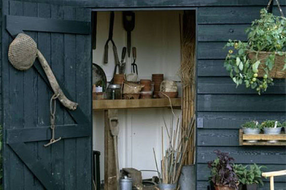 Чуланчик для инструментов может быть совсем маленьким, скажем, 2 х 2,5 м. Такого пространства вполне достаточно, чтобы упорядоченно разместить весь садовый арсенал. Важно, чтобы там было сухо. И это, пожалуй, единственное строгое условие. Нельзя же допустить, чтобы дорогой секатор ржавел.