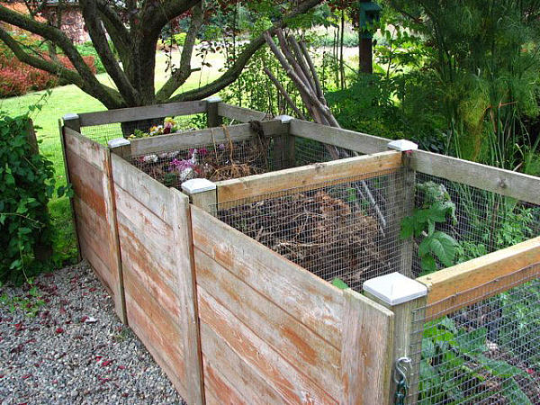 Желательно оградить компост живой изгородью, маскирующей это место, и для притенения посадить с южной стороны несколько деревьев.