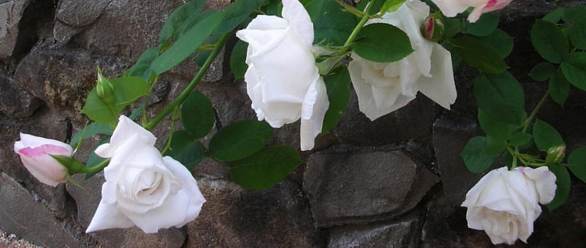 Самая известная ремонтантная роза 'Frau Karl Druschki' (Lambert, 1901), одна из лучших роз XX века. Острые бутоны с карминно-розовыми штрихами распускаются в крупные (12-14 см) снежно-белые цветки, хотя и лишенные аромата. При всякой погоде бутон распускается легко и дает огромный цветок ослепительной белизны.