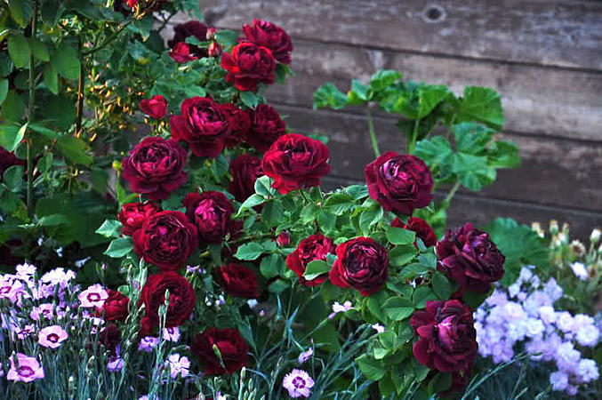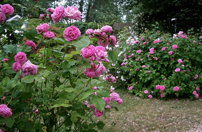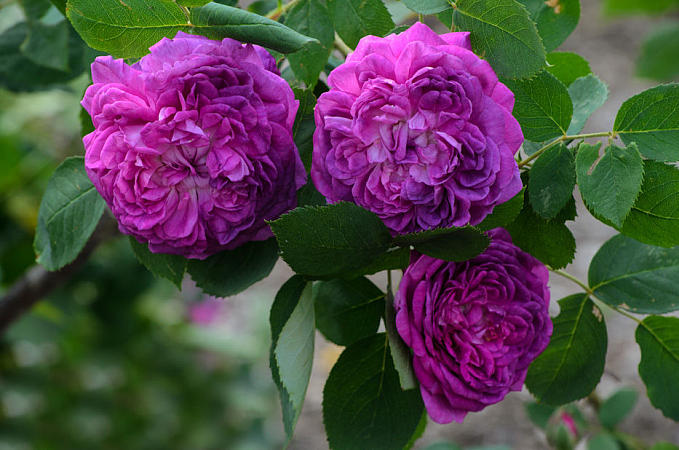 Иногда окраску этой розы называют аметистовой. Этот сорт считался на редкость устойчивым и использовался даже в живых изгородях. 'Reine De Violettes' выносит полутень, но любит дренированные почвы.