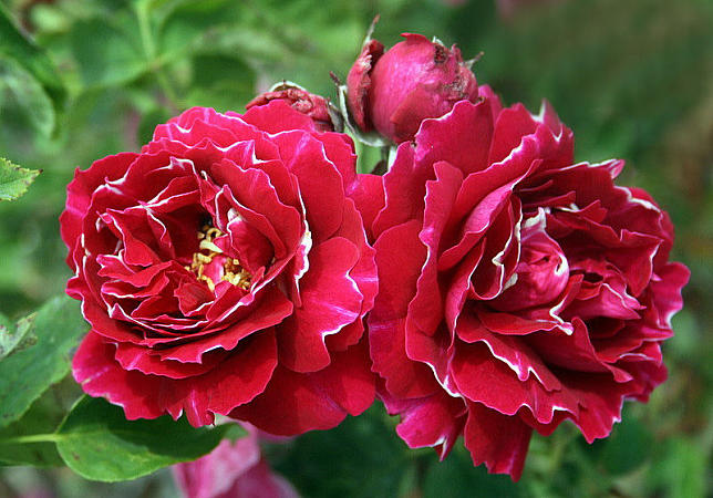 По красоте цветка с этой розой и сегодня трудно соперничать. Махровые цветки (35 лепестков) собраны в соцветия по три-пять штук. Кусты сильнорослые, прямые, с крупными и светлыми листьями.