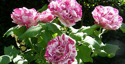 Ремонтантная роза 'Ferdinand Pichard' (Tanne, 1921), известна и сегодня благодаря пестрым душистым цветкам и устойчивости к болезням.