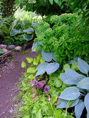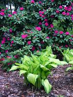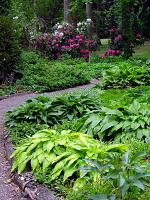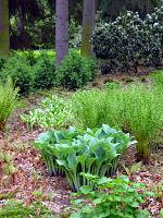 Вокруг крупных хост удобно сажать весенние луковичные. Хосты отрастают поздно. Листья, разворачивающиеся в мае, прикрывают увядающие луковичные.