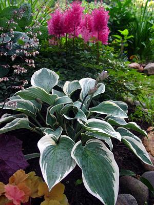 Удивительно, но от обилия хост сад становится только краше. Это поистине универсальное растение. При фантастическом разнообразии окраски и фактуры листьев сорта прекрасно сочетаются не только друг с другом, но и с большинством садовых растений. В тени с папоротниками, осоками, примулами, горянками, гейхерами, морозниками и фиалками, на солнце с розами, ирисами, геранями, манжетками.
