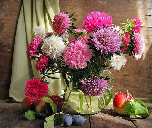 Впрочем, помечтать не вредно. Какие же мы посадим (посеем под зиму или весной следующего года)? Мое любимое и не могу сказать, что очень оригинальное сочетание — желтого с сиреневым и фиолетовым. Игольчатые, кудрявые, сферические — все равно. Я бы не придерживалась сортов единого типа. А когда-то мне нравились однотонные розовые: папа моей школьной подруги привозил такие с дачи охапкой, и их ставили в большую керамическую вазу...