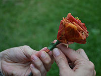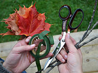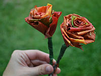 Плотно сжав основание розы, оборачиваем черешки флористической лентой.