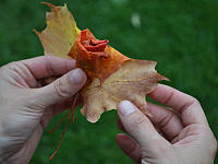 Берем маленький листик, и, заложив зубцы, сворачиваем его в фунтик-конвертик.