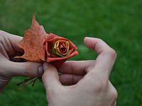 Чтобы розочка не развалилась в процессе, всегда придерживайте ее в месте прикрепления черешков.