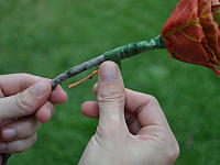 Если хочется длинный стебелек, в самом начале оборачивания приставляем к черешкам палочку и продолжаем плотно обматывать.