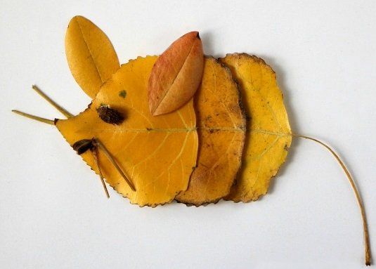 Трехлетнему ребенку это занятие пришлось по душе, включая процесс сбора листьев. Мы сделали мышонка, но можно не ограничиваться этим. Другие аппликации с этим набором материалов получатся не хуже, например, различные птицы и цветы.