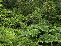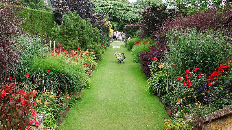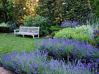- чем больше доля зеленого цвета в саду, тем с большим числом тонов и цветов, в том числе и контрастных, он может комбинироваться (т.е. чем больше на участке газона и древесных посадок, тем больше может быть ярких цветников);