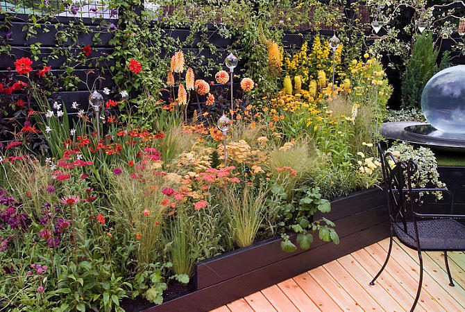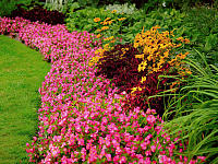 - чем интенсивней и разнообразней в цветовом отношении передний план цветника, тем спокойнее должен быть задний план и естественное обрамление;