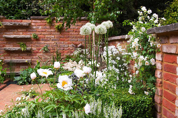 Монохромный цветник (с преобладанием одного цветового тона) включает, как правило, растения, отличающиеся по светлоте и насыщенности (для таких цветников подходят в основном пастельные неброские тона — розовый, сиреневый, белый, золотистый).
